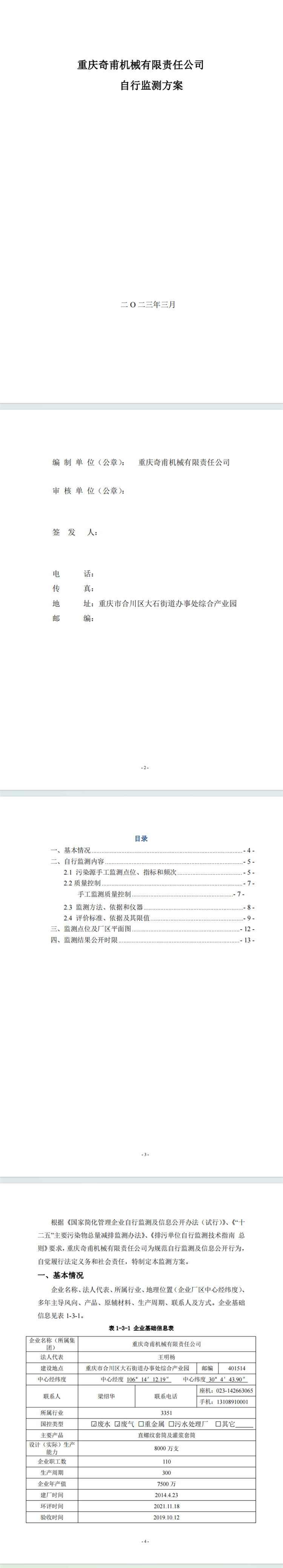 重慶奇甫機(jī)械有限責(zé)任公司 自行監(jiān)測方案